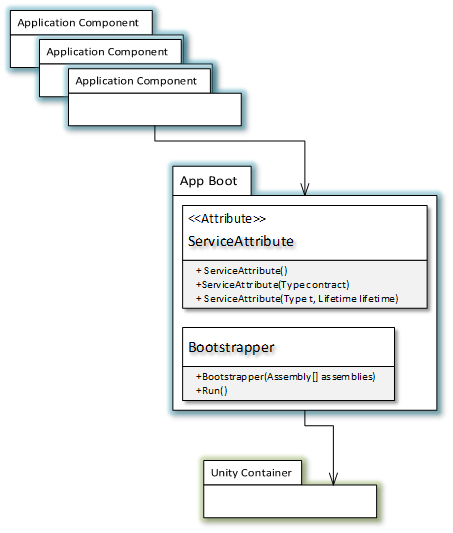 AppBoot is a generic .NET application bootstrapper, we at iQuarc, have put on GitHub a while ago. It started few years back when we were about to begin developing a large enterprise application. Back then, we wanted to use the Unity Container for dependency injection, but we liked the way