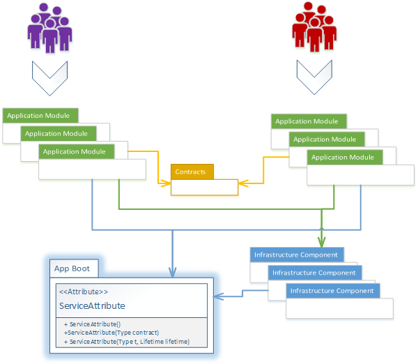 Another thing would be to add support for Type Containers. At startup, AppBoot scans anyhow all the types from all the assemblies that form the application. Therefore, we could define custom attributes to decorate classes with them, and have the AppBoot initialize containers with types based on the metadata from these attributes. This kind of feature would encourage declarative programming, which would improve Separation of Concerns and reduce the complexity.