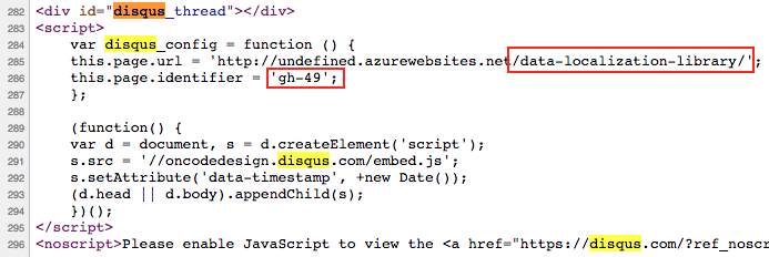 The page.identifier might require some thinking. If we look into Disqus documentation it says that this variable is used to uniquely identify the comments thread that should be shown in the post. So, indeed the {{post.id}} seems a good idea. However, this id is nothing more than an integer that is incremented by ghost with each page or post we add. What if I will migrate from Ghost to another platform? The alternative would be not to use it and to rely only on the post.url, which change is supported by Disqus Migration Tools. However, on the other hand, I might need to change the URL before a migration for other reasons, like a title rename, or a typo. In the end, I've concluded that I'll use it with the gh- prefix, because: